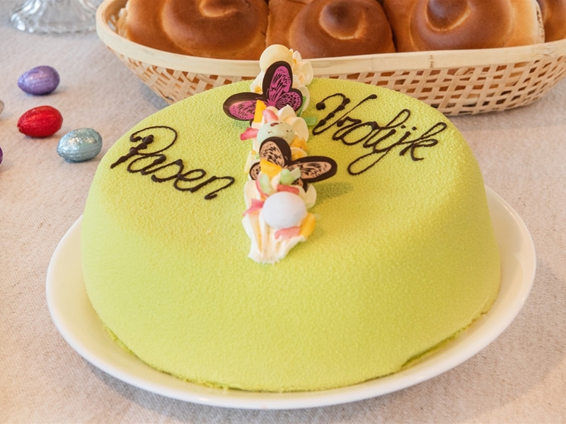De met chipolata gevulde taart is bedekt met marsepein. Andere maten zijn mogelijk. Voor ca.6 tot 8 personen