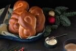 Broodjes van een briochedeeg die gevlochten zijn en daardoor een feestelijke uitstraling hebben. Met Pasen in de vorm van een kuiken